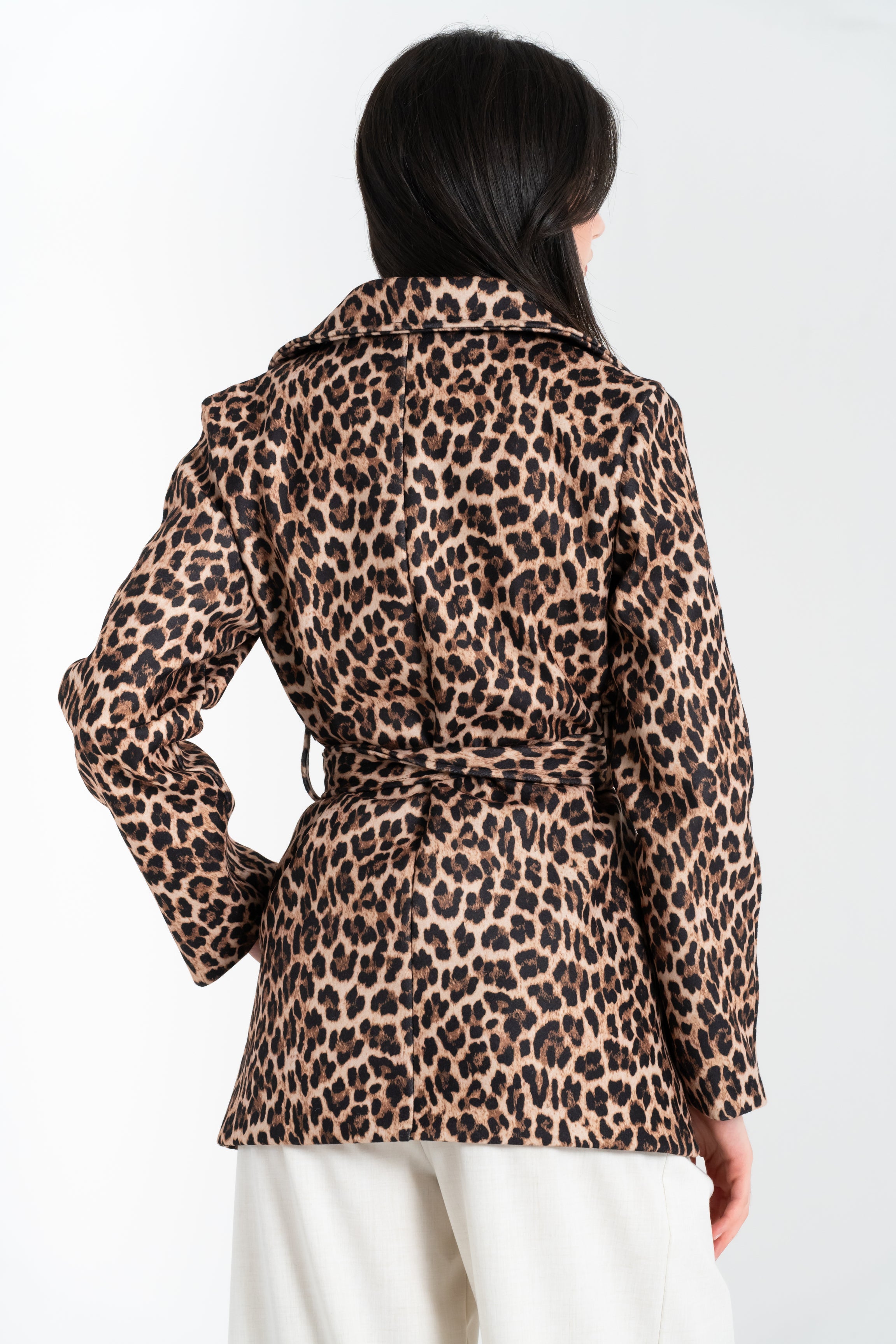 Giacca donna con cintura in vita, stampa animalier tigrato e leopardato.