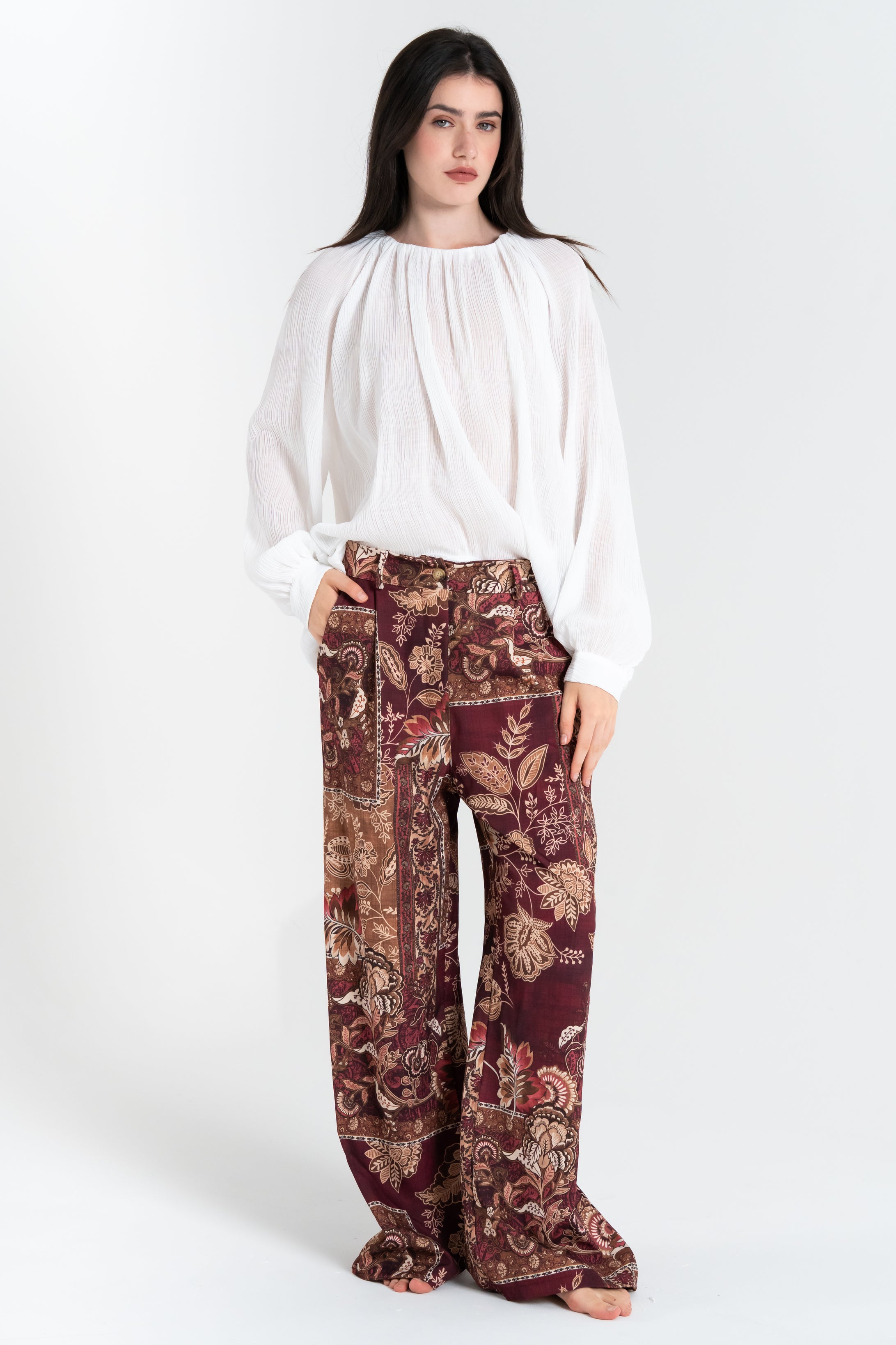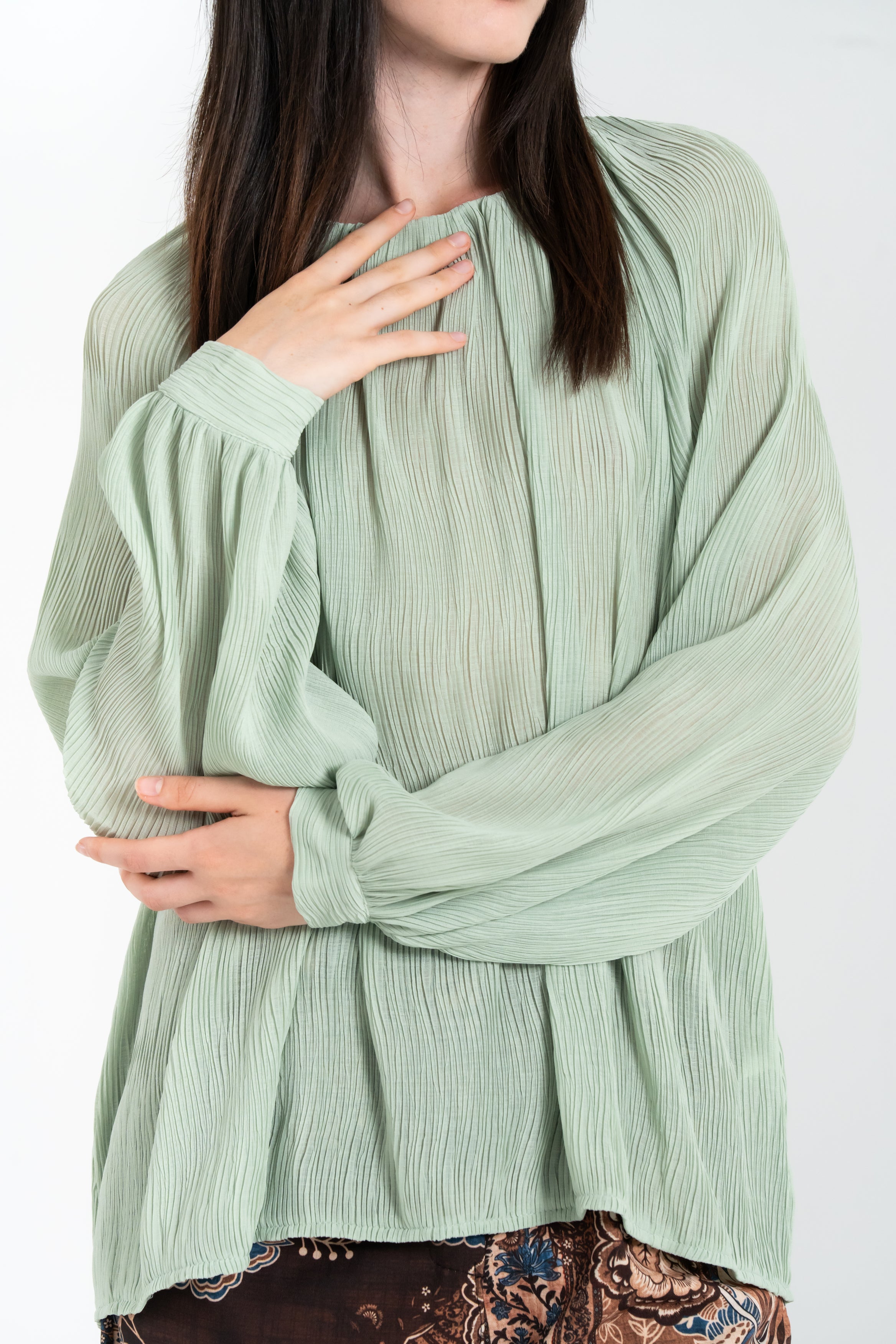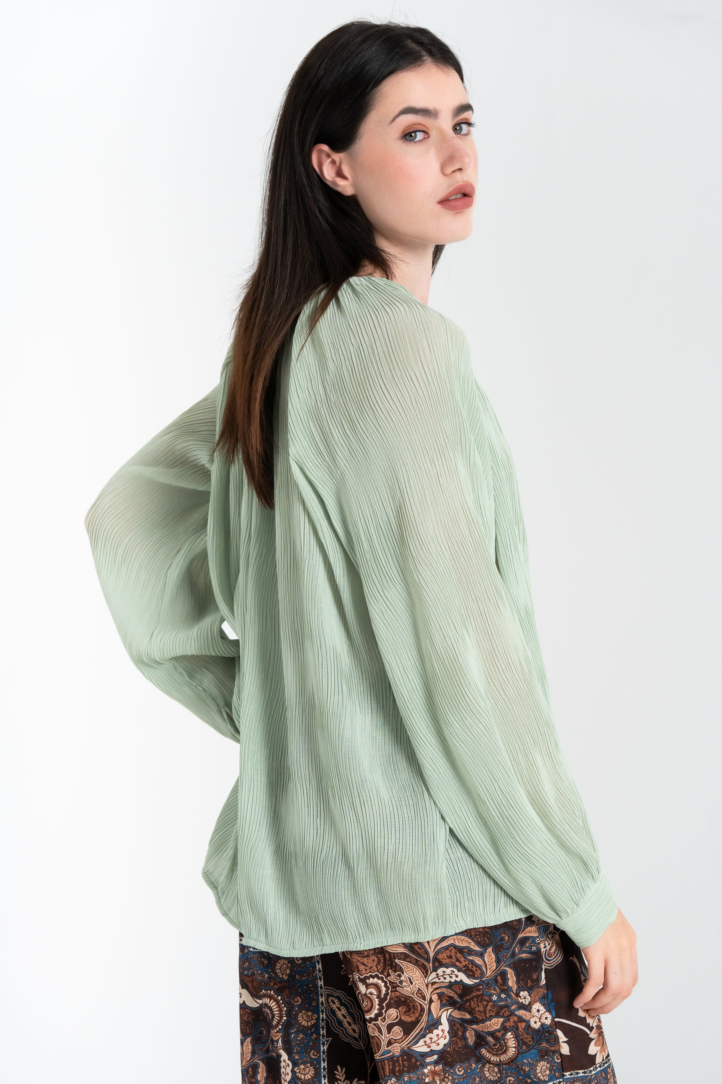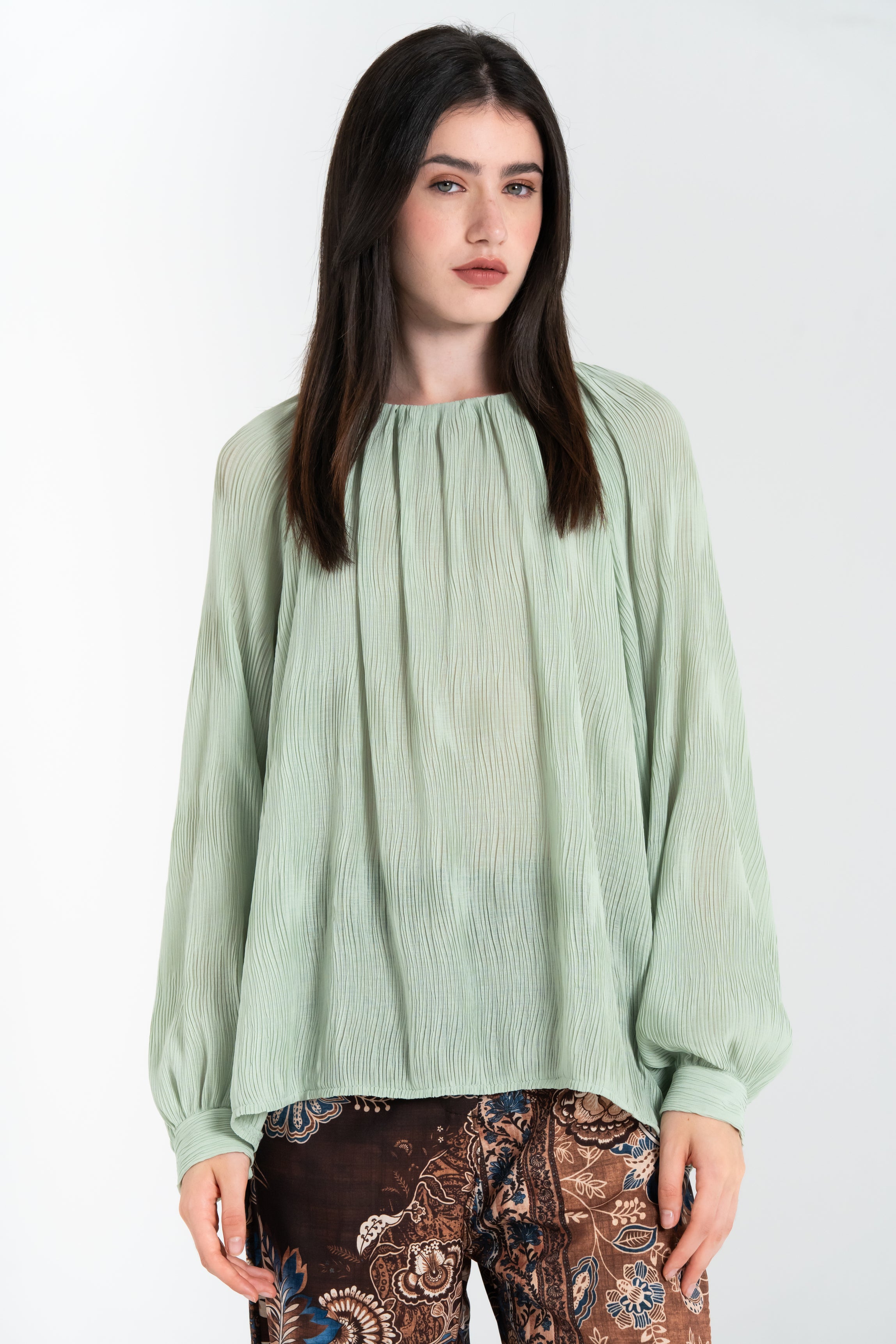 Casacca da donna plissettata, con girocollo, maniche lunghe e tessuto leggermente trasparente.