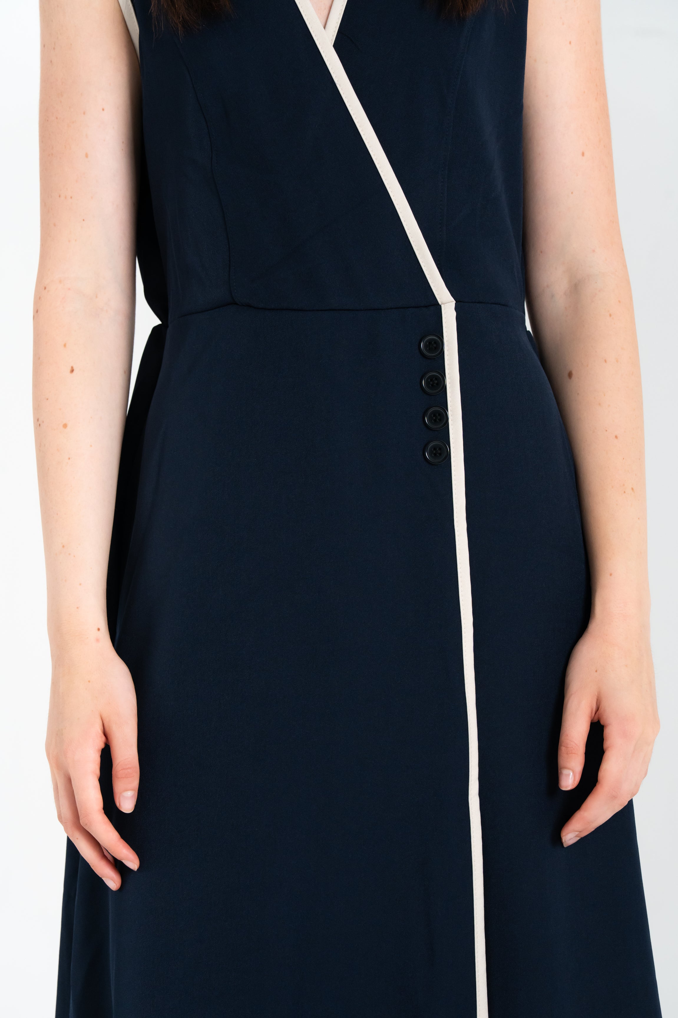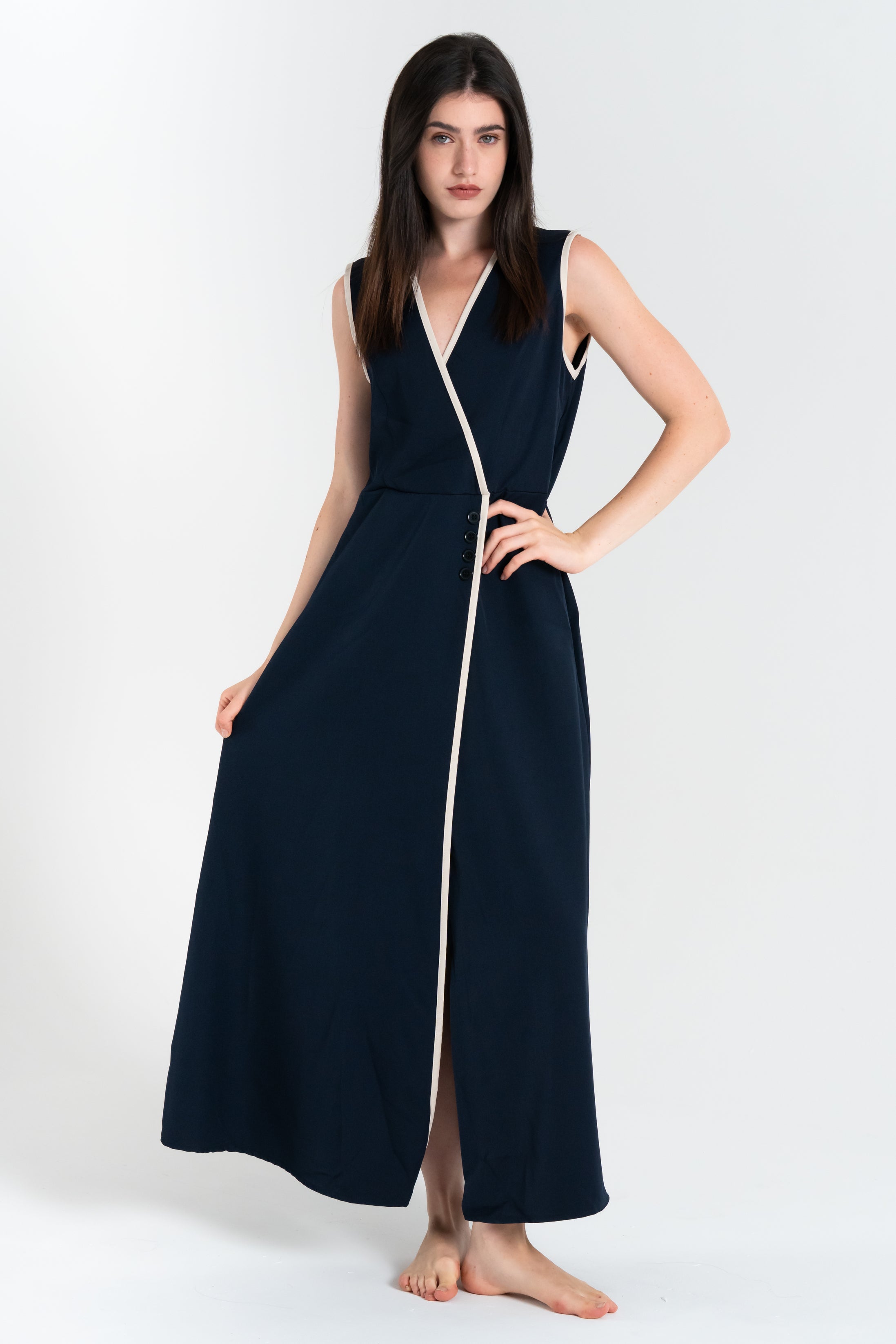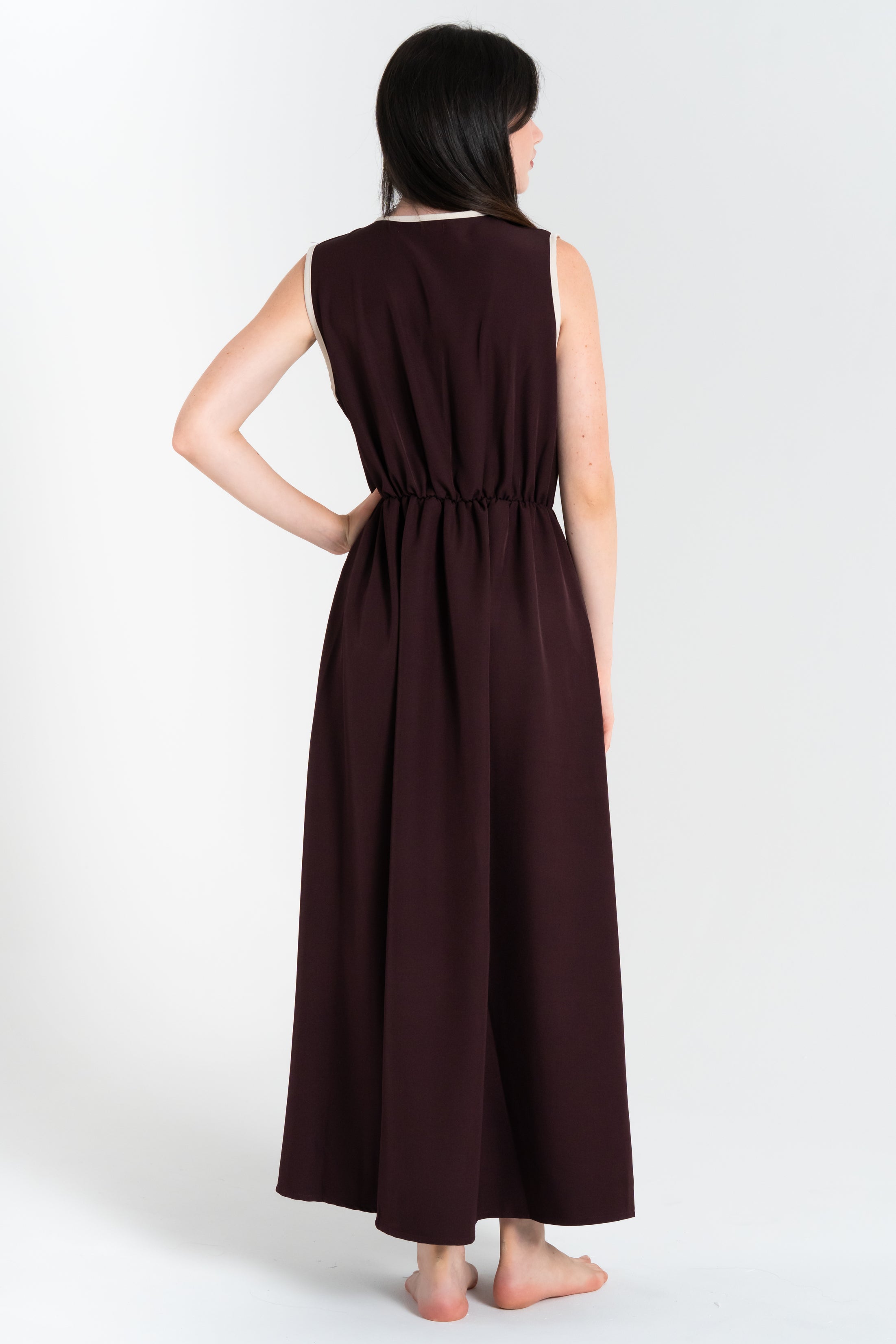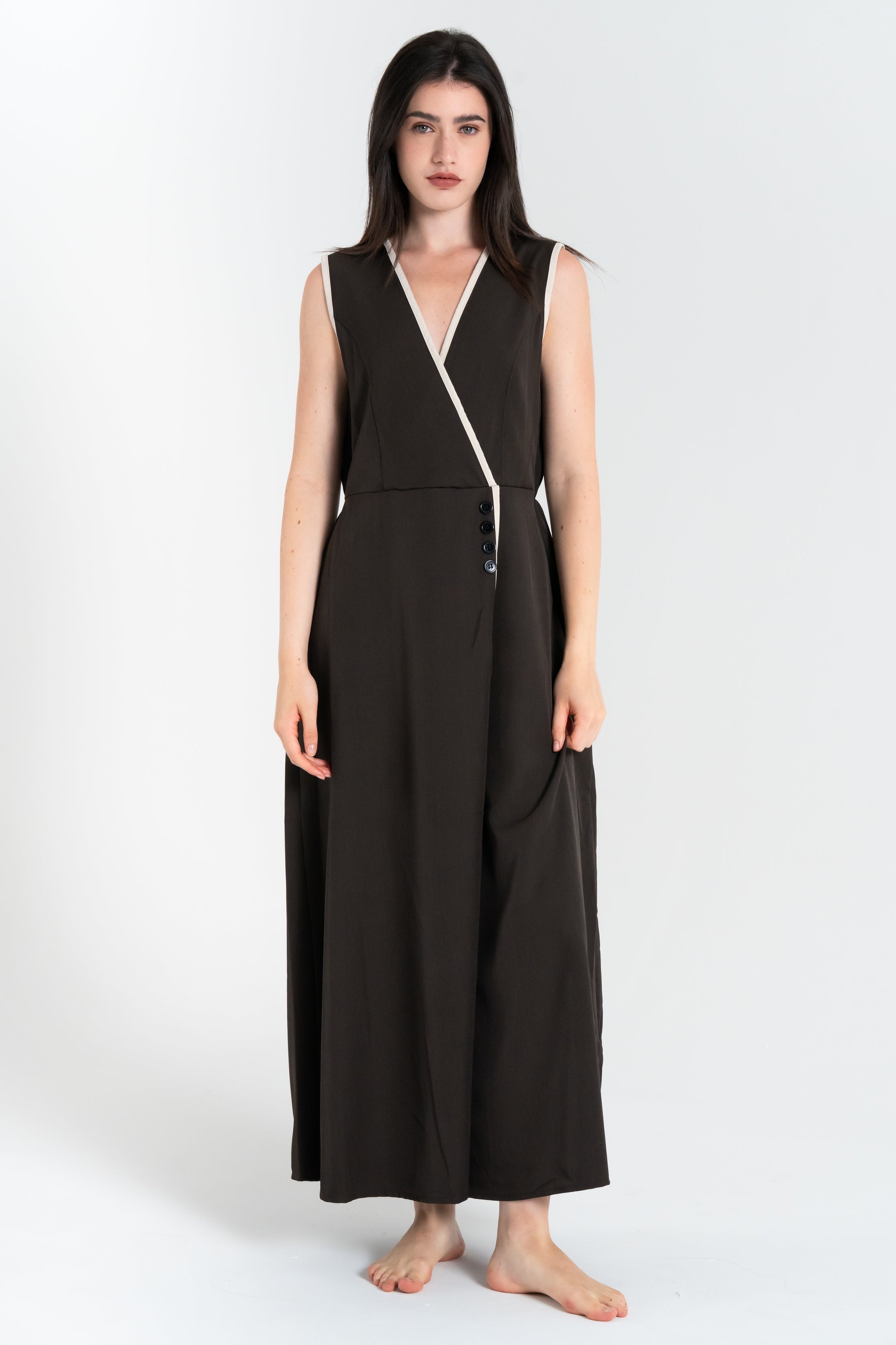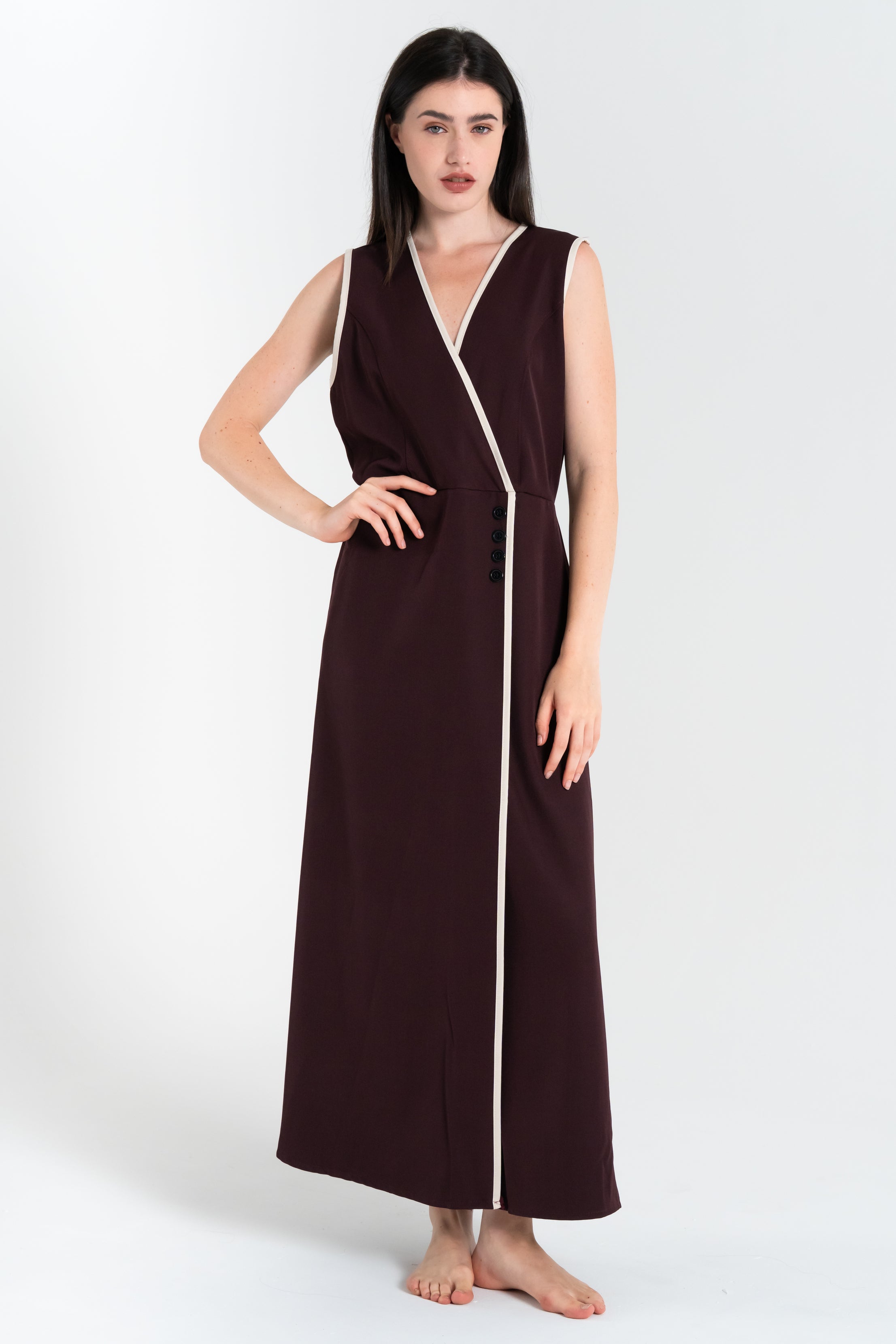 Abito lungo da donna smanicato, con scollo a V e in tinta unita.