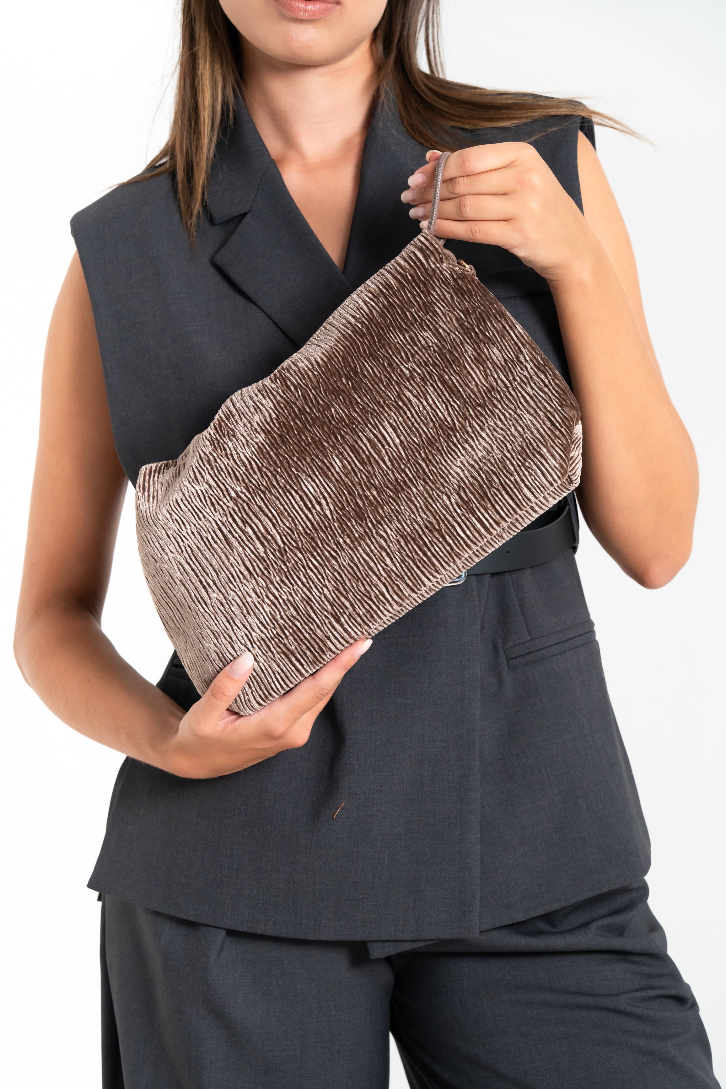 Pochette donna rettangolare in velluto, morbida e leggera.