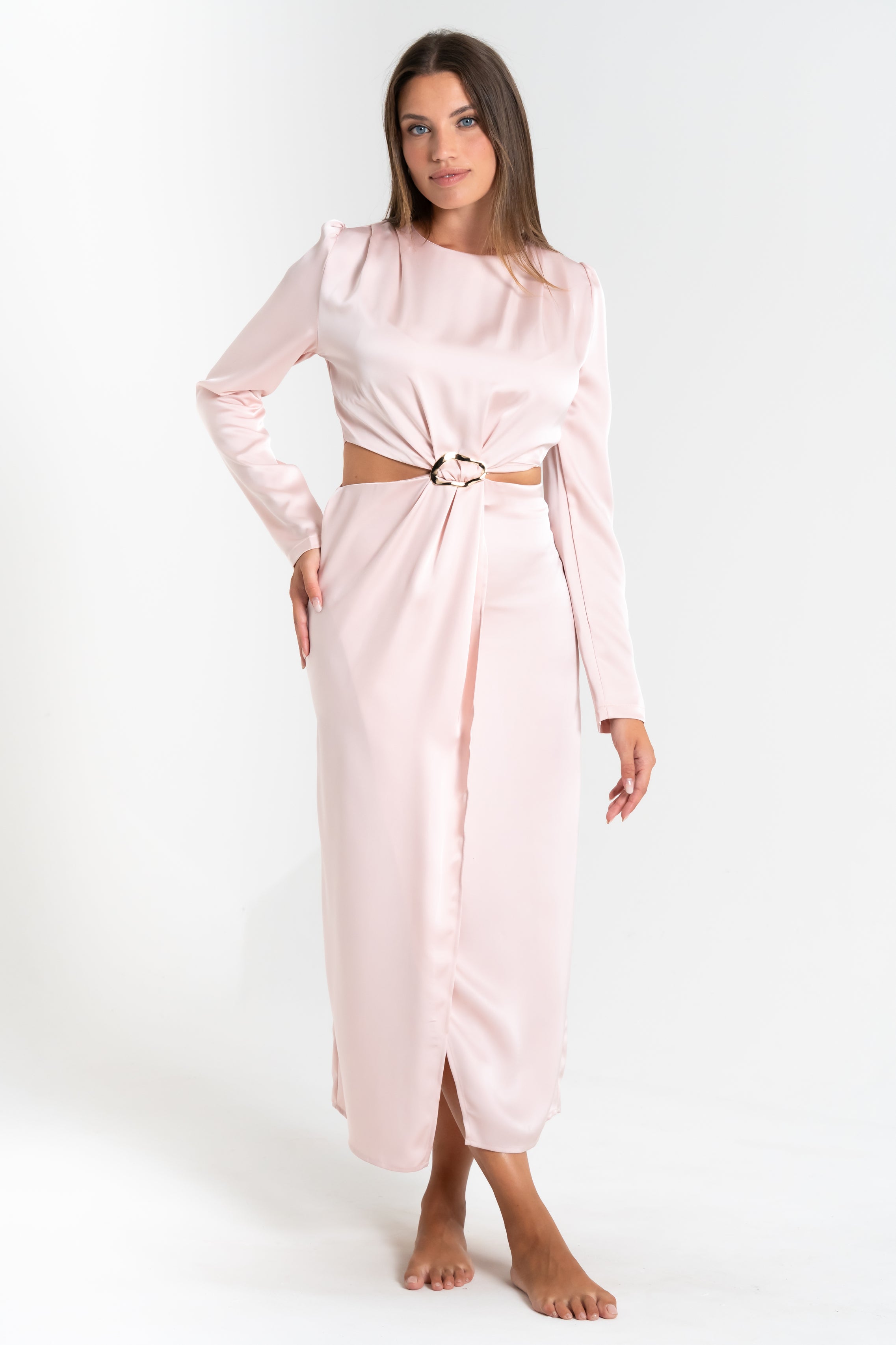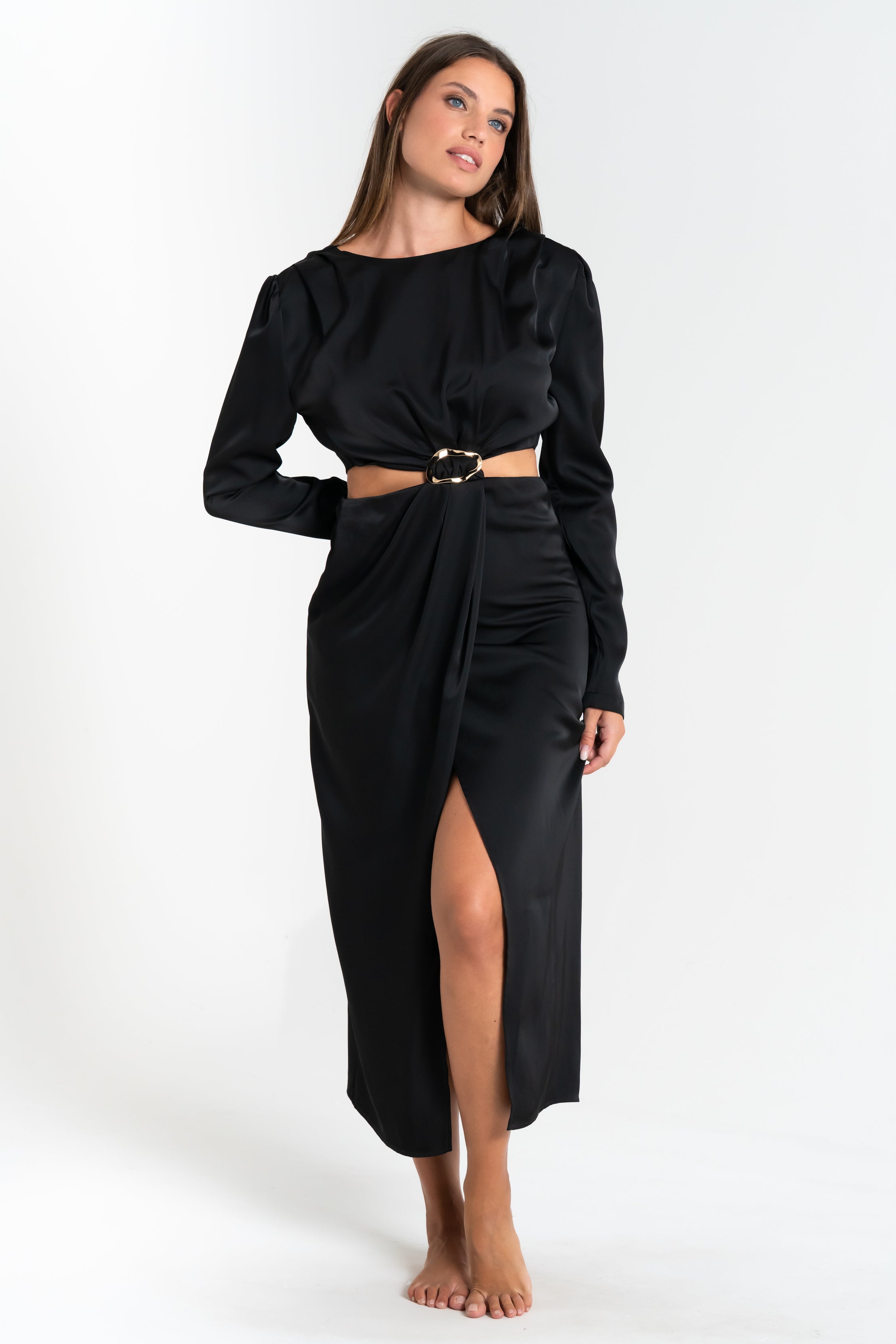 Abito lungo da donna effetto seta, primaverile.